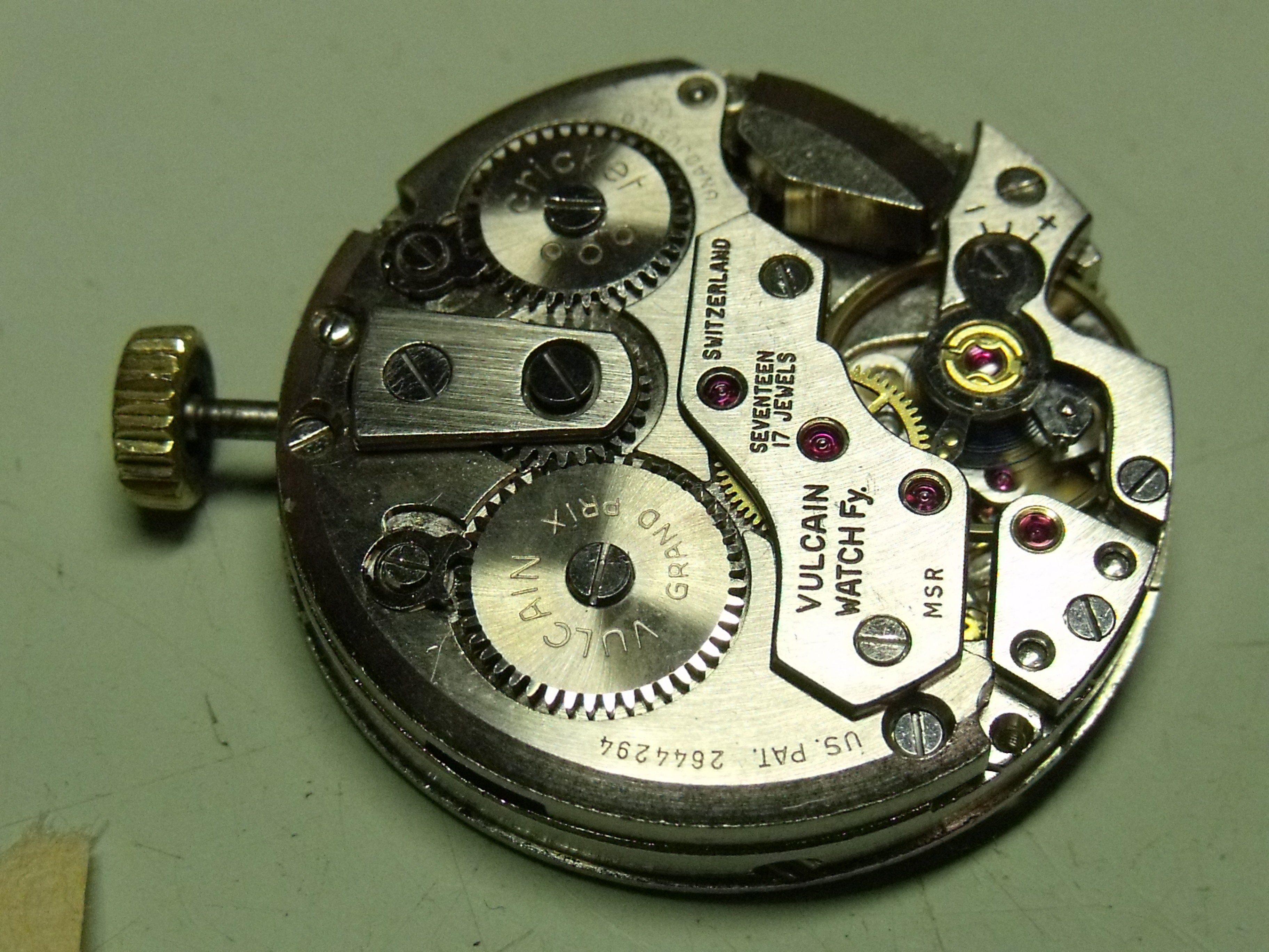 Liste des pièces détachées fournies avec cette montre calibre Vulcain Cricket 770 S.2 Swiss made :