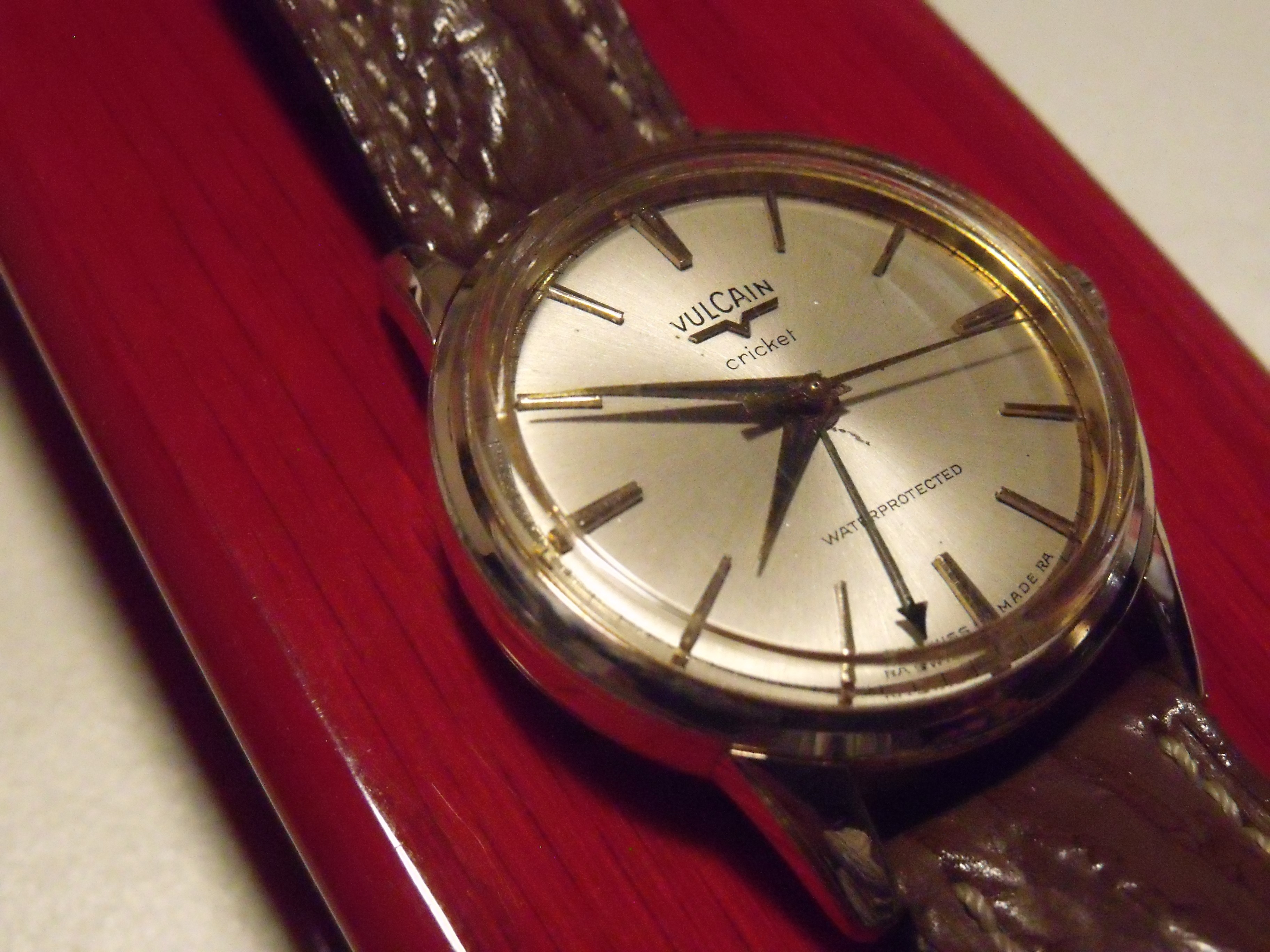 VULCAIN CRICKET ALARM Montre Mécanique Homme Vintage Années 1970 très Bon Etat, Révisée, Bracelet Requin + Pièces Détachées Fournies