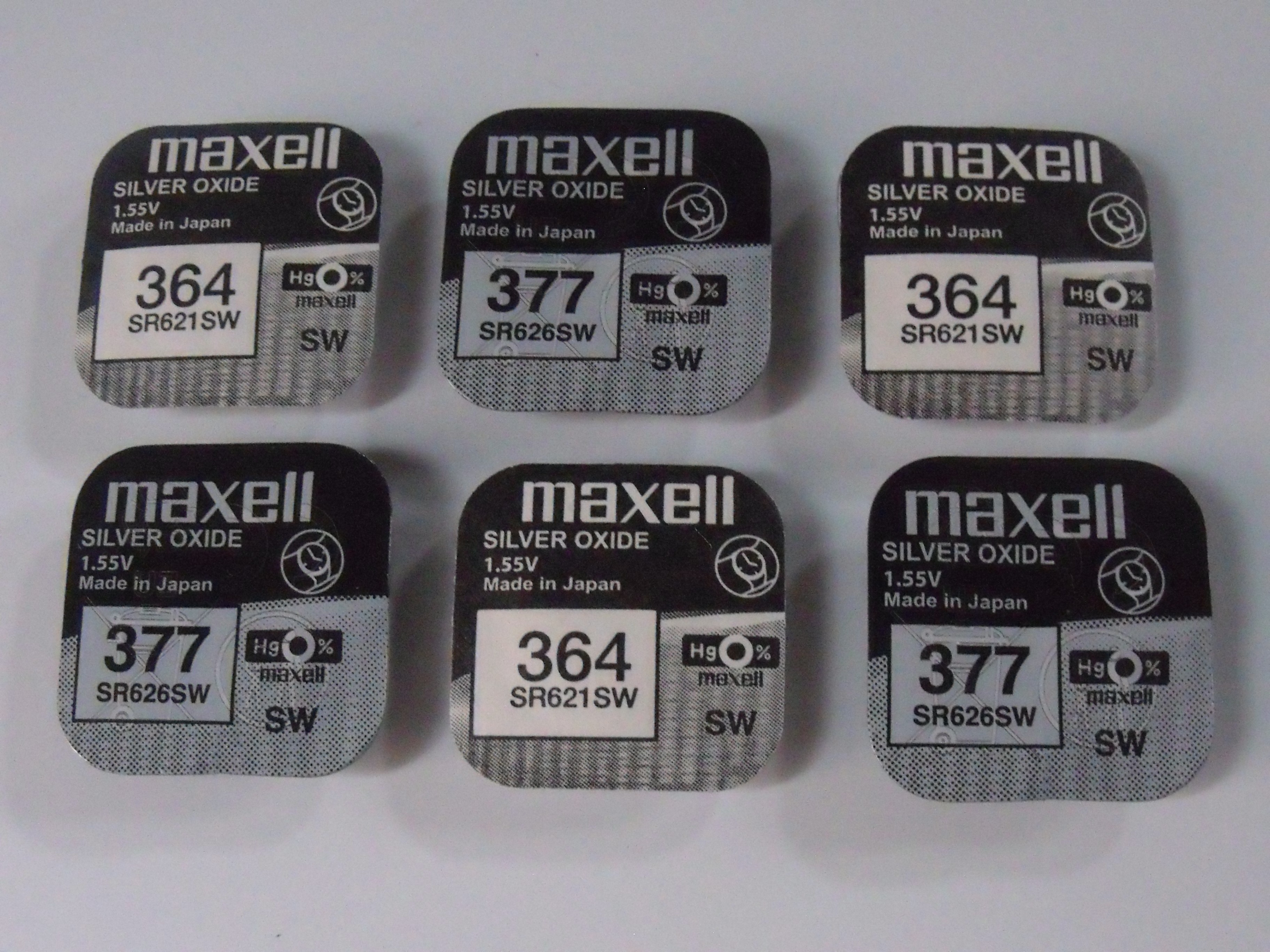 Lot de 6 Piles pour montres 1,55 V Assorties : 3 Piles 364 / SR621SW + 3 Piles 377 / SR626SW