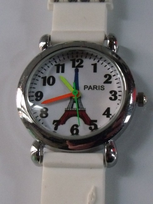 Montre Enfant Paris Tour Eiffel, Multicolore, Blanche, Boîtier Métal, Cadran avec Seconde Centrale, Diamiètre 28 mm hors Anses et Remontoir